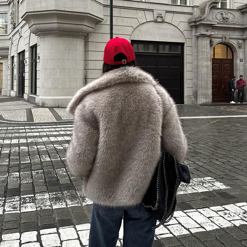 亚马逊欧美跨境批发2025秋冬女装纯色人造毛领外套女外套