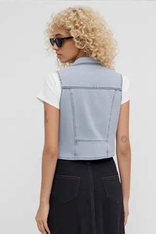 休闲缩小版90年代亚麻和牛仔背心将怀旧的90年代风格与现代元素相结合,采用轻便的亚麻和牛仔混合面料,提供极致舒适感。非常适合搭配T恤或连衣裙,这款背心为你的休闲装扮增添了一种轻松而时尚的氛围,是任何时尚爱好者的必备单品。